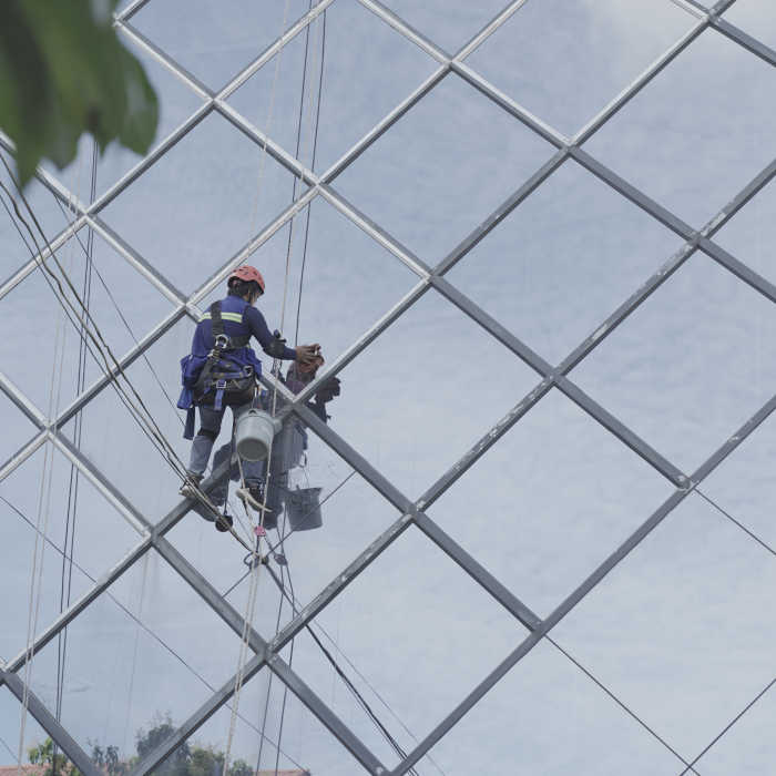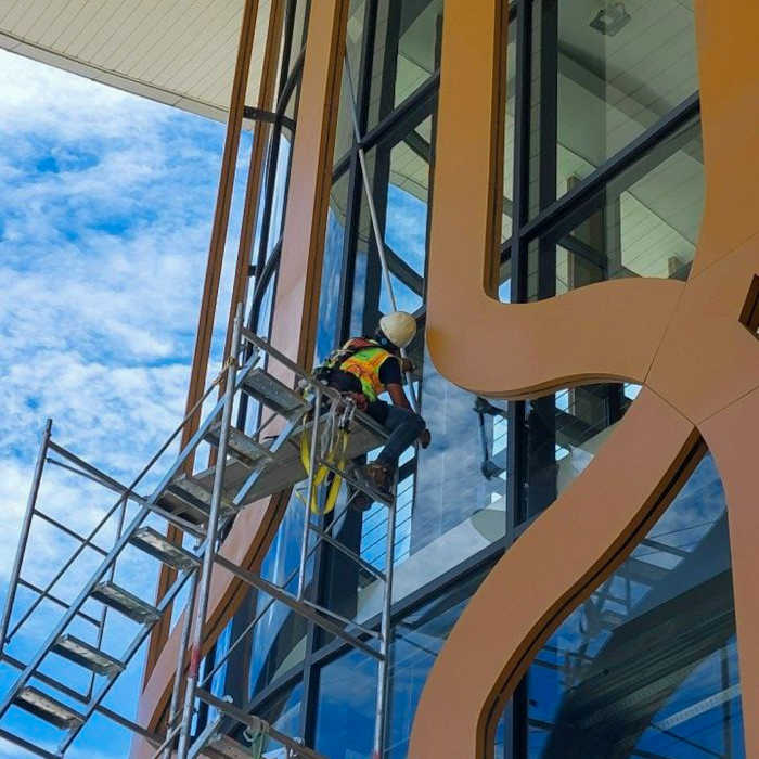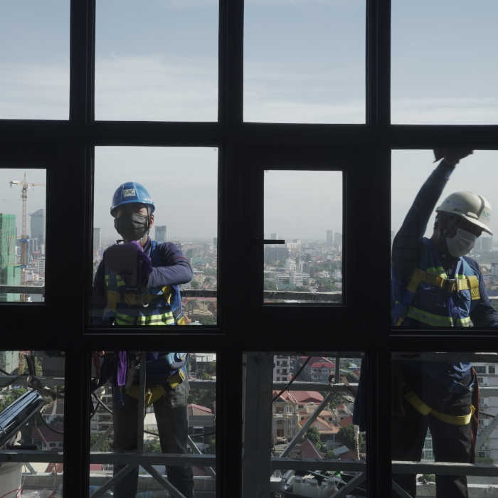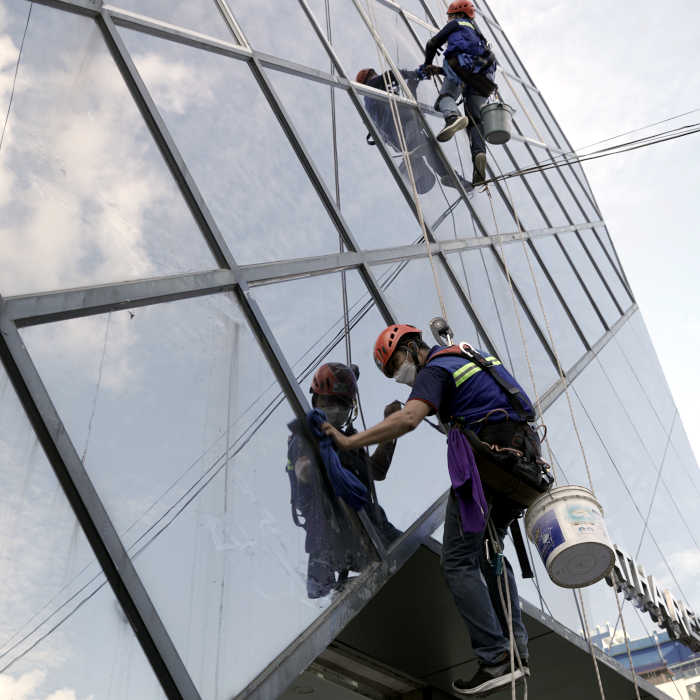 MC Services has been providing high rise suspended platform facade cleaning for CMED Cambodia.