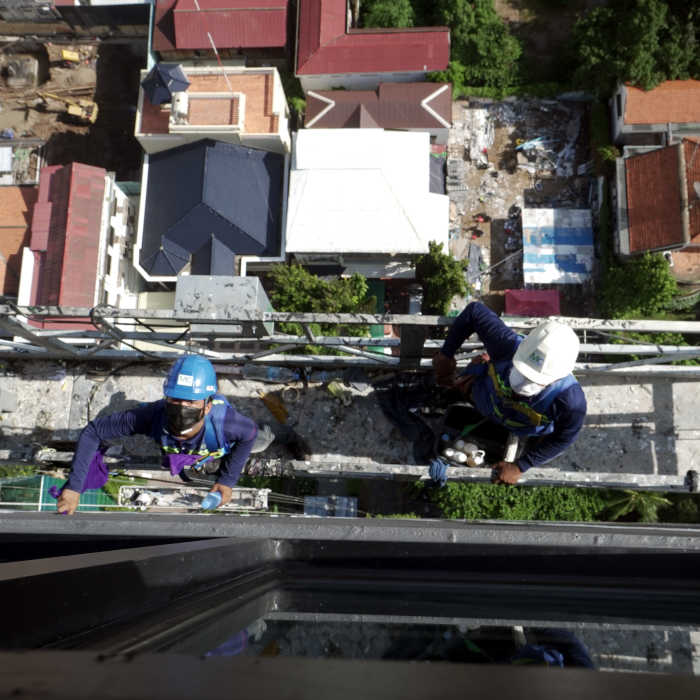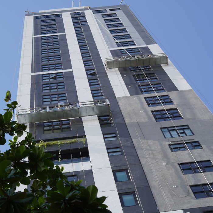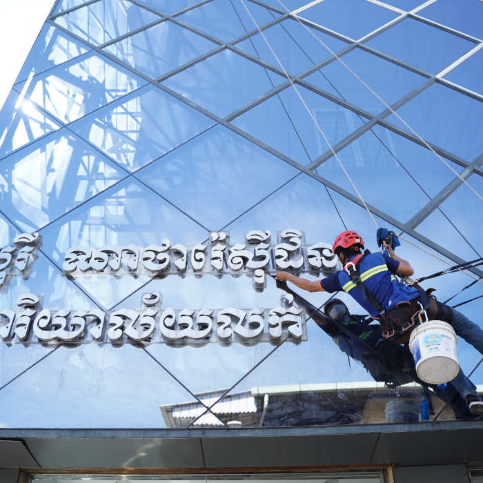 MC Services has been providing high rise suspended platform facade cleaning for CMED Cambodia.